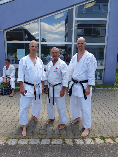 Nach dem Lehrgangsteil fanden unter den strengen Augen des Meisters noch Prüfungen statt, welche die Teilnehmer nach Aussage des Senseis allesamt solide bestanden.